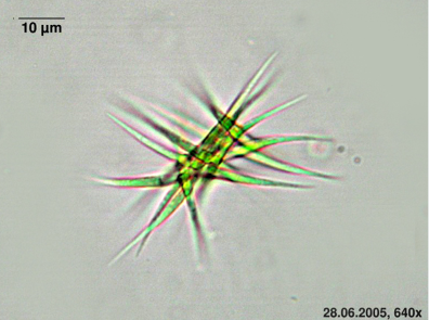 Ankistrodesmus is a freshwater green alga characterized by its long, narrow, crescent-shaped cells that may